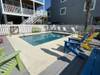 Pool heated 3/1-5/30 and 9/1-11/1 if air temp is not below 55F. Large covered porch with ocean view adjacent to living room furnished with sturdy deck furniture. Fenced rear yard with private ocean side pool and hot tub, children-friendly trex board decking, gas and charcoal grilles, picnic table and sturdy pool deck furniture. Private elevated trex boardwalk to beach with ocean side bench seating. 2 ocean front master suites. Upstairs hallway sitting area with flat screen TV/DVD. Granite kitchen countertops and stainless steel appliances, glass top range, convection oven, dishwasher and fully equipped kitchen. Washer and dryer upstairs. Seven flat screen TV’s with cable. Wi-Fi internet service. No pets or smoking allowed. Private Beach Access.
